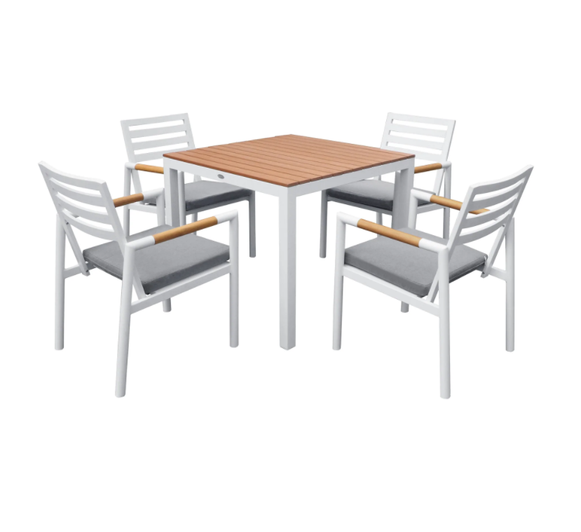 Leisure Aluminium Garden Furniture Teak Wood Outdoor Dining Set Modern Patio Restaurant Chairs With Cushions