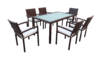 Modern Outdoor Dining Set Square Table and 6 Carver Chairs in Mocha Rattan Garden Furniture
